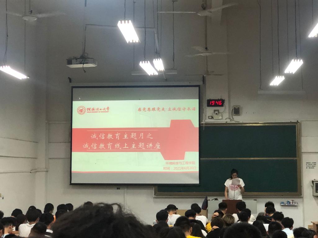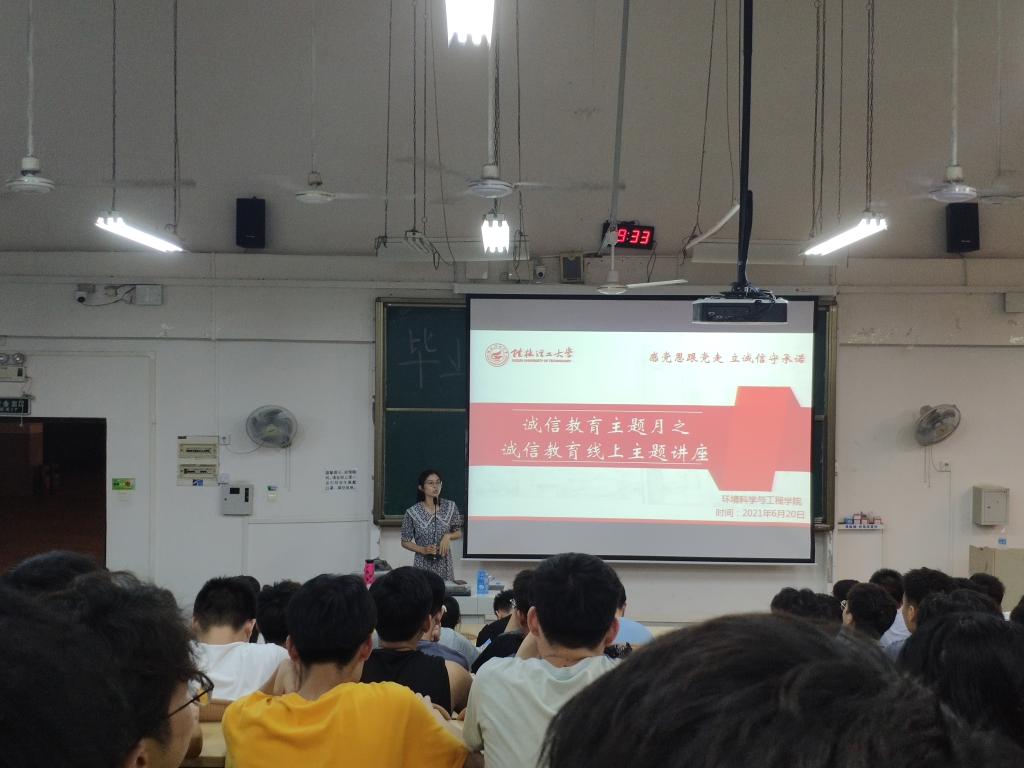 辅导员在大学生成长成才课上,为全院本科生开展了诚信教育主题讲座。