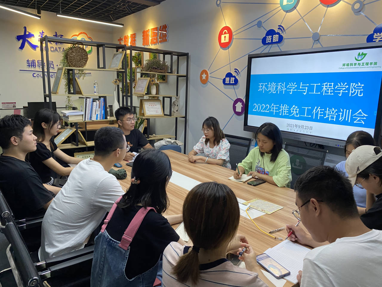 9月23日晚,十大赌博网站排行榜 在12408大数据工作室召开2022年推荐优秀应届本科毕业生免试攻读硕士学位研究生工作培训会,2018级获得推免资格的同学参加会议,会议由辅导员潘泓序主持。