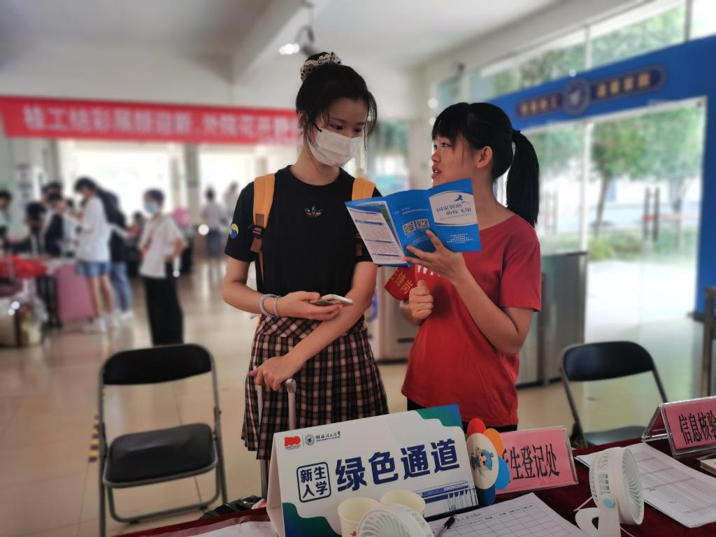 开展宣传大使为新生宣传资助政策活动,学院在新生招待处设置绿色通道,资助宣传大使李学强、韦春伊在设点绿色通道处为新生进行资助政策答疑解惑。