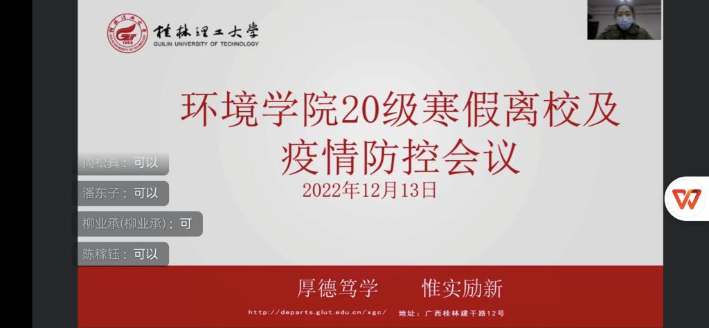 辅导员、班主任分别以年级、班级为单位,线上线下相结合的形式, 于12月13日晚,组织开展了2022年秋季学期本科生安全文明离校主题教育。