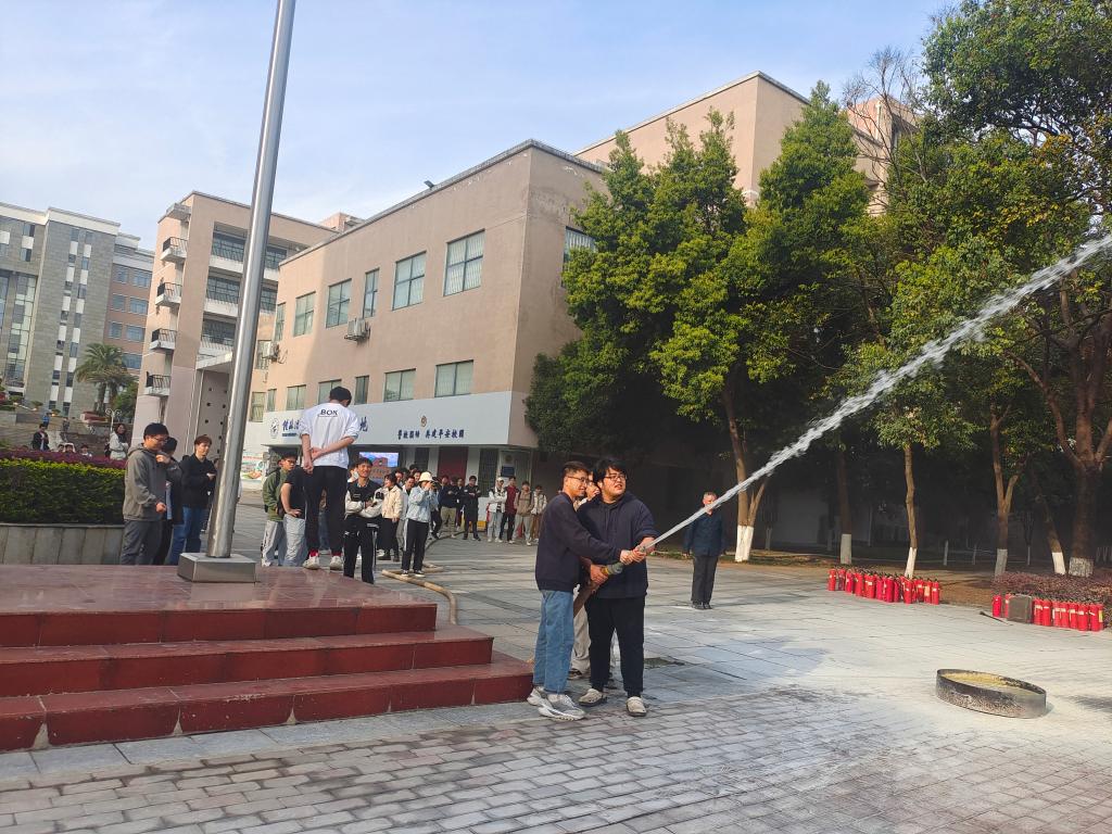 联合学校武装部、保卫处和雁山区消防救援大队举办了消防安全知识讲座和现场演习。