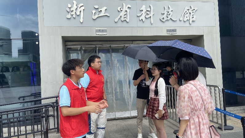 实践团成员在浙江省科技馆做志愿服务