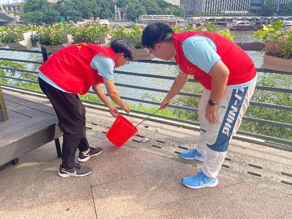 “碧水杭城韵,绿色长征行”科考实践团在浙江科技馆学习完科技理论知识后,立即前往大运河,运用刚学的知识,在大运河周边展开一系列宣传、科普活动,并对大运河的环境进行了相应的清理。