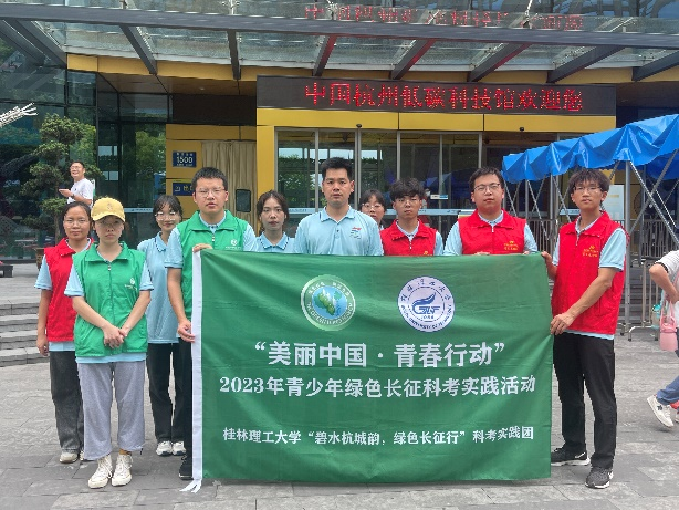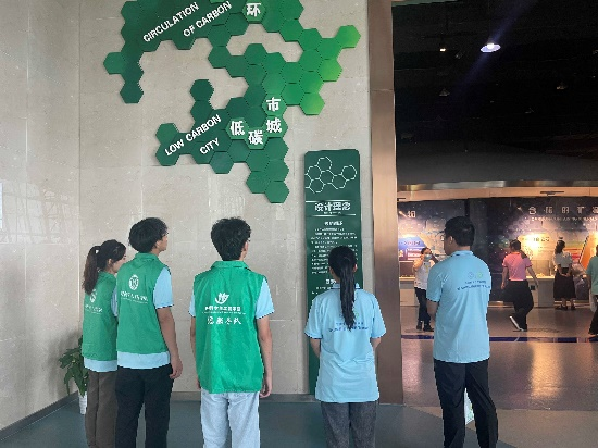 "碧水杭城韵,生态长征行"社会实践团来到了位于中国杭州低碳科技馆进行参观学习。