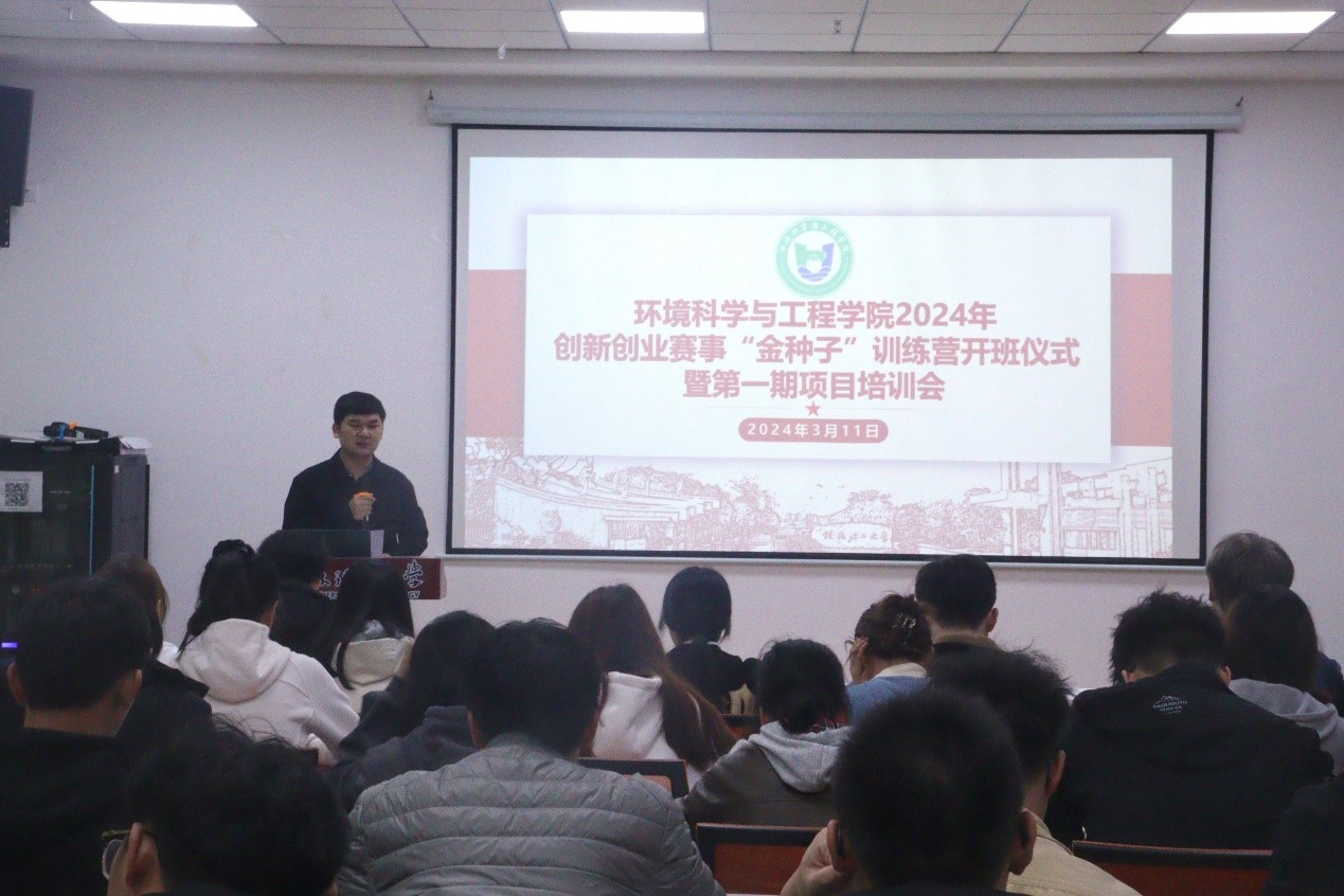 2024年大学生创新创业赛事备赛工作,学院于3月11日晚在雁山校区大学生创新创业园15205室开展了学院“金种子”训练营开班仪式暨第一期项目培训会,培训会由学院团委书记刘砥主持,38名“金种子”项目负责人参加了本次培训。