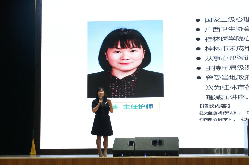 邀请桂林医学院附属医院主任护师、国家二级心理咨询师苏元英和雁山反诈中心、雁山派出所负责人李灵希在雁山校区综合体育训练馆开展“沁润文明心灵,筑牢安全防线”——2024年心理健康暨安全稳定专题教育活动。学生工作部(处)副部(处)长、大学生就业与职业规划中心主任迟国东,研究生工作部部长孙巍,学院党委副书记叶大相,武装部、保卫处蒋小康、郑林出席活动,学院全体专兼职辅导员及全体研究生、本科生共计2000余人参加,活动由叶大相主持。