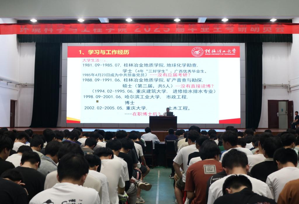 邀请学校原党委书记张学洪教授在雁山校区风雨操场举办2025届毕业生考研动员大会,学院副院长李海翔、朱宗强,学院党委副书记叶大相出席会议,相关辅导员及全体2021级本科生共计400余人参加,会议由叶大相主持。