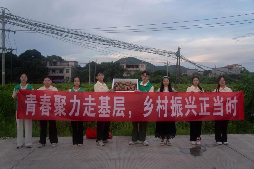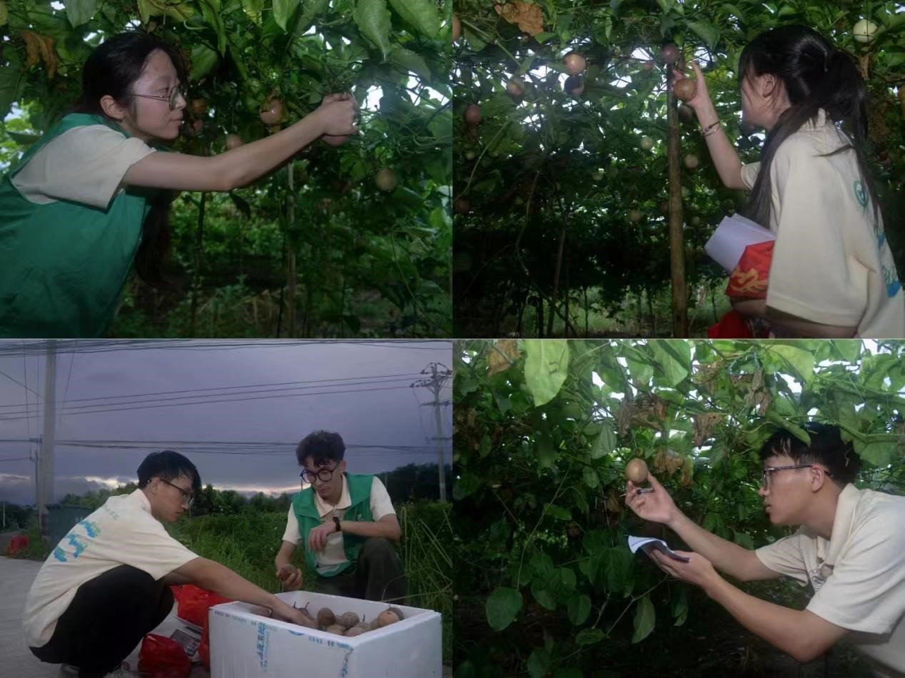 ““点茶成金”社会实践团队深入广西贺州市百香果、火龙果产业基地,走进田间地头,开展劳动实践活动。