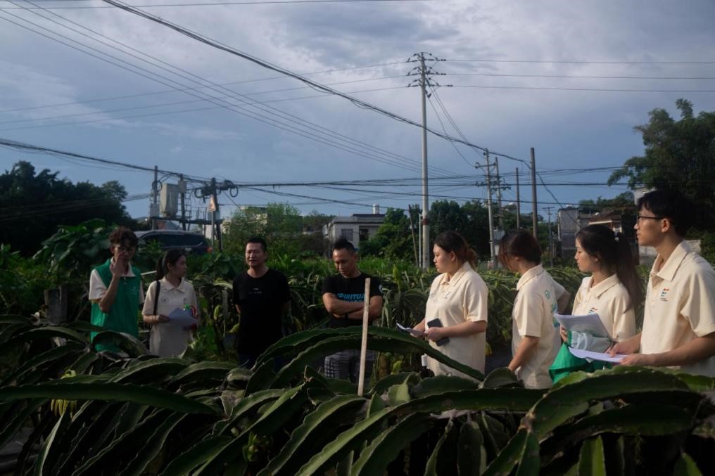 火龙果果农向实践团讲解火龙果产业园种植情况
