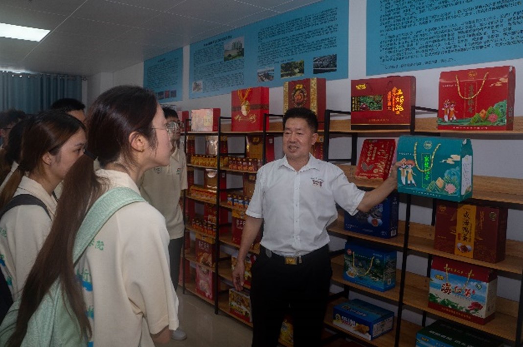 会后,杜益东带领实践团参观了党建中心、办公室、妇女联合处、产品展示厅等。在产品展示厅,这里陈列着来自东兴市及周边地区的各类特色产品,如那良心远香米、京族香粽、咸海鸭蛋等。