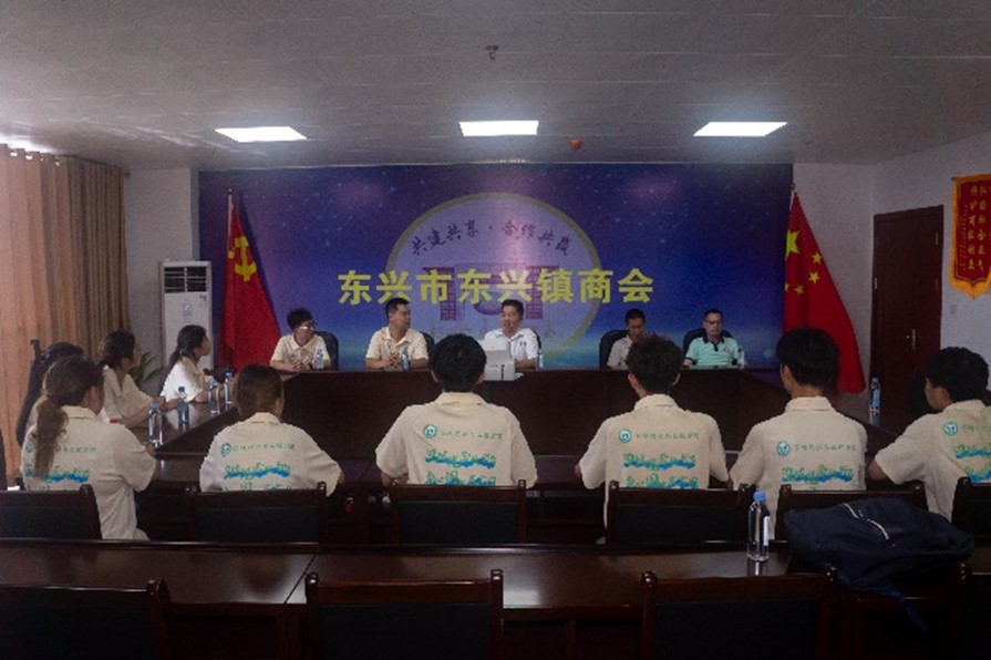 随后,实践团一行来到了东兴镇商会,与商会领导及企业代表进行了深入而热烈的座谈。会上,会长杜益东详细介绍了商会成立背景、组织架构及产业发展情况。实践团成员与商会代表就如何利用当地资源优势,推动经济发展,促进乡村振兴进行了深入讨论。十大赌博网站排行榜