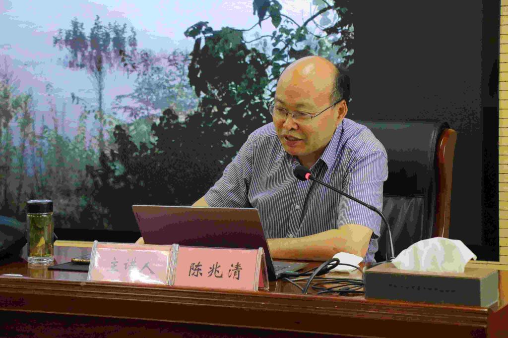 图为陈兆清教授为实践团成员们介绍淠史杭