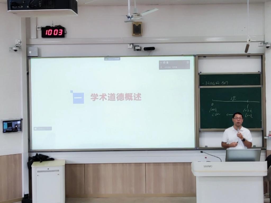 于9月14日在07614和07615组织开展学术诚信教育大会。会议由学院副院长黄亮亮主讲,相关辅导员及全体24级研究生参加。