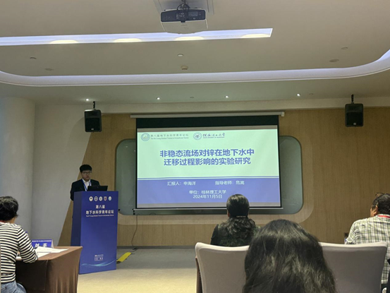 水利工程专业(地下水方向)硕士研究生申海洋在污染物迁移转化机理分会场做了题为《非稳态流场对锌在地下水中迁移过程影响的实验研究》的口头报告。现场专家对该报告进行了点评。
