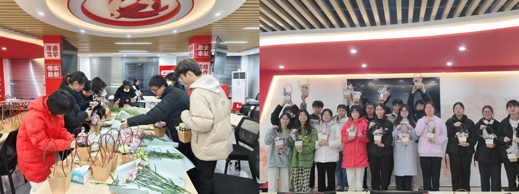 此次活动以“花”为纽带,让学生在插花创作中通过艺术表达疏解压力、唤醒积极情绪,同时在献花行动中以具象化的感恩实践深化情感联结,实现心理素养与道德品质的同步提升。女教师们在收获节日祝福的同时,也从学生的成长反馈中感受到职业价值感与幸福感,进一步激发了“以美润心、以爱育人”的教育热忱。未来,学院将持续探索“心理+德育”创新路径,通过多元活动构建师生情感支持网络,让感恩之心与健康心态共同滋养立德树人的沃土,绽放教育的时代芳华。