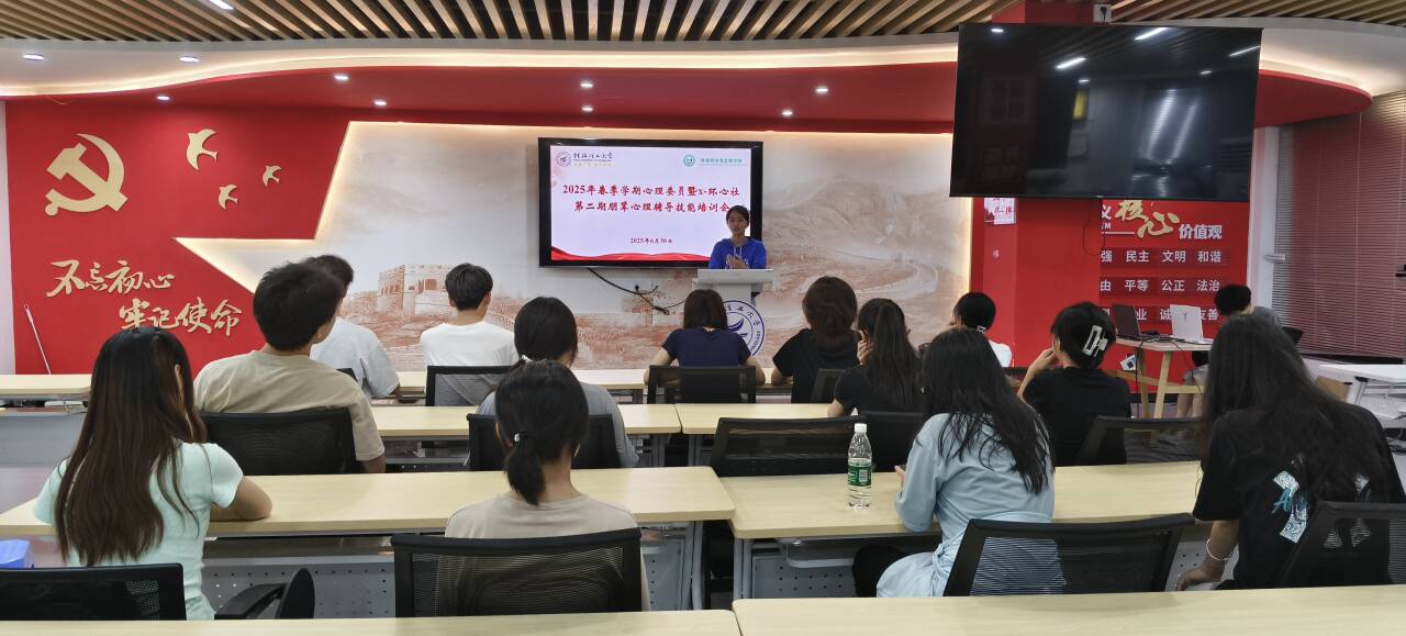 2025年春季学期心理委员暨x-环心社第二期朋辈心理辅导技能培训会,全体心理委员参加培训。