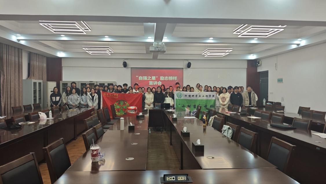 在12407会议室举办“自强之星”励志榜样宣讲会,50余名受助学生参与本次活动。