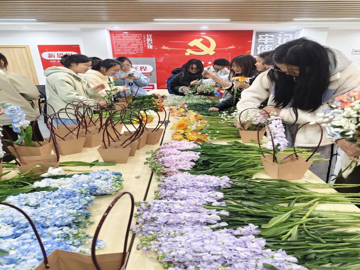 活动现场温馨雅致,学生精心制作满怀心意的花篮,通过“插花实践+感恩献花”双环节,为全院女教师送上节日祝福。一句句暖心的话语,一朵朵娇艳的鲜花,让全体女教师倍感温馨与感动。她们手捧鲜花,脸上洋溢着幸福的笑容,现场处处洋溢着喜庆、温暖、和谐的节日氛围。