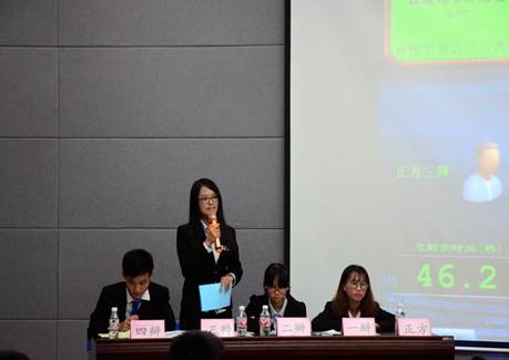辩论队12级队长谢安斌做开场白。比赛开始,首先双方一辩分别就自己的辩题进行立论陈词。随后是最为激励的攻辩和自由辩论环节,双方的二辩、三辩纷纷使出看家本领,博得现场观众的阵阵掌声。最后双方的四辩对各自的观点进行了总结。辩论渐渐进入了尾声,现场观众对辩论双方进行了提问之后,由十大赌博网站排行榜