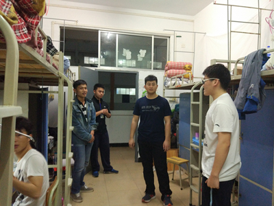 从本学期开始,积极组织全院宿舍长召开宿舍长例会,严抓宿舍环境卫生及安全隐患排查工作,经过大家的不懈努力,学院宿舍整体情况得到较大的改善。但在走访中发现还是有少部分同学在宿舍里没有注意卫生及用电安全,对此,田老师当面教育了这些同学及宿舍的宿舍长,宿舍是集体环境,构建文明校园,打造学习氛围浓厚、宿舍卫生环境良好的宿舍阵地是我们每一个环境学子应尽的义务,与此同时对于表现不好的同学,宿舍长及楼管委要有针对性地进行劝说教育,以提高宿舍卫生环境,提高十大赌博网站排行榜