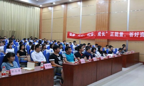 党委副书记郝文佳热情致词,并对到场的学生寄予厚望,希望我们将来对社会做出更大的贡献。报告会在大家的期待中拉开了帷幕。腾鹏飞、赵学爽、韦壮绵、史孔鹏四位优秀学子分别从学习、干部、实践、考研四个方面给我们带来了一场振奋人心的报告会。四位优秀学子做完报告后,与大家开展了一场座谈会,主持人就学习、恋爱等几个方面对四位优秀学子提出了问题,他们针对不同的问题也给出了自己的看法。座谈会结束后,进行了资助月优秀感谢信和“助学筑梦,励志成才,担当有为”征文比赛获奖的同学颁奖。