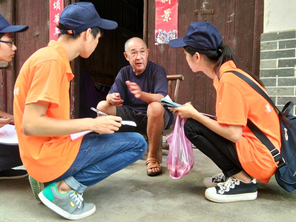 暑期社会实践团开始了本次实践的第一个活动。队员们想要通过问卷调查来了解居民对环境相关的一些看法以及他们对环保知识的了解情况,此外队员还想要通过一些环保知识的宣传,来为村民们提供一些日常生活中常用的环保技巧。