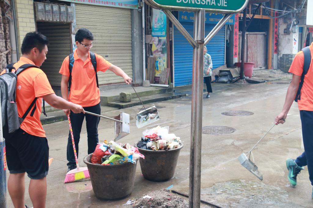 赴六塘暑期实践团在六塘镇街头开展了清扫活动,为清洁乡村奉献出自己的一份力量。