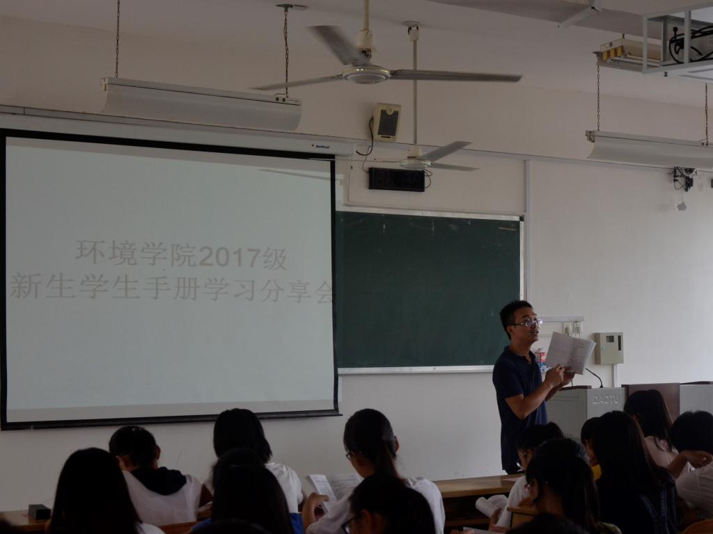 在5栋教学楼为刚刚步入大学校园的2017级新生进行了一堂《学生手册》、《桂林理工大学师生文明礼仪手册》学习教育分享会。分享会由学院团委副书记唐红兵主持。