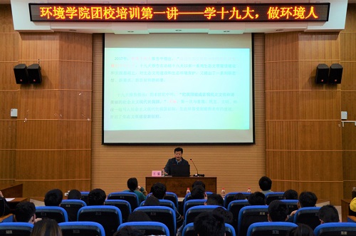 党委书记王璐于雁山校区萃华楼报告厅开展了团校培训的第一讲——“学十九大,做环境人”,辅导员宋海民老师出席了本场讲座。