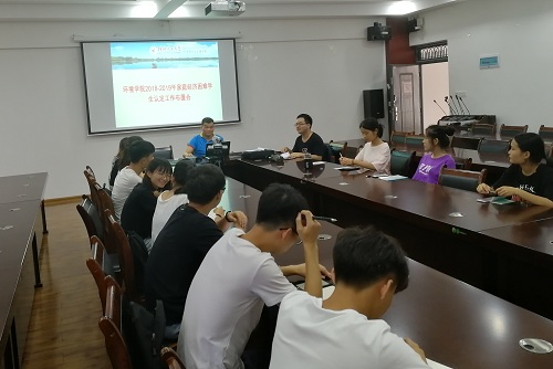 2018-2019学年度家庭经济困难学生认定工作布置会”。学院资助辅导员黄兆凡老师主持会议,团委副书记唐红兵老师出席会议。