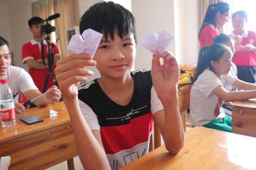 整个支教活动共有三个课程,折纸课程上,小朋友们表现最为热烈,认真观察老师的折纸动作,遇到不会的问题,助教的团员们也会及时解惑,小朋友们心灵手巧,折成的作品种类繁多,有爱心、有火箭、有蝴蝶,还有灯笼。折纸课后就是充满欢声笑语的舞蹈课了,我们选择的舞蹈是《ppap》,动作简单却十分好玩,小朋友们虽然都有些羞涩,但是在团员们的鼓励下都能够踊跃参与。最后一堂课是由黄兆凡老师为小朋友们上一堂环保启蒙课,在老师生动形象的讲解下,小朋友们都听得十分认真,看着那一张张认真的脸庞,我们感觉我们做的支教变得更有意义了,环保观念的小种子种在小朋友们的心中,期待日后生根发芽想成参天大树,环保事业就要从小开始。