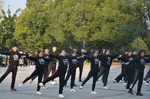 在雁山校区三栋教学楼广场举行2018年广播体操比赛。此次比赛邀请十大赌博网站排行榜