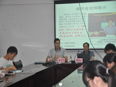 2019年7月4日18:00,应学院邀请,原桂林理工大学理学院基础教学部主任杨秀前老师在雁山校区12407会议室开展2021届学生考研高数规划复习知识讲座,由学院党委副书记郝文佳主持,年级辅导员罗义淞、李楠以及2017级给排水、环境工程、水文、地下水(水工)四个专业共计人210人参加。