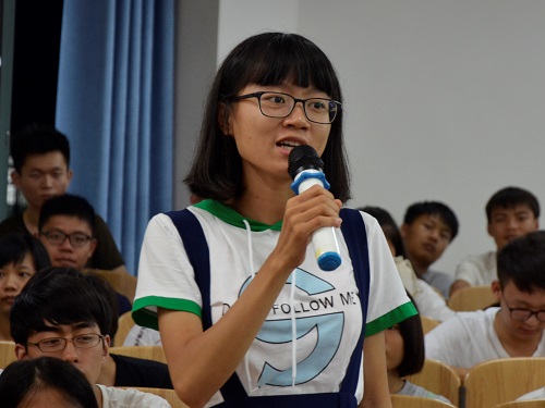 会议接近尾声,开始了同学们自由提问环节,新生们向自己感兴趣的部门提出问题并由该部门部长进行解答。最后,还进行了“看图识人”的小游戏互动,通过角度不同的照片让同学们猜是哪位团委学生会成员。