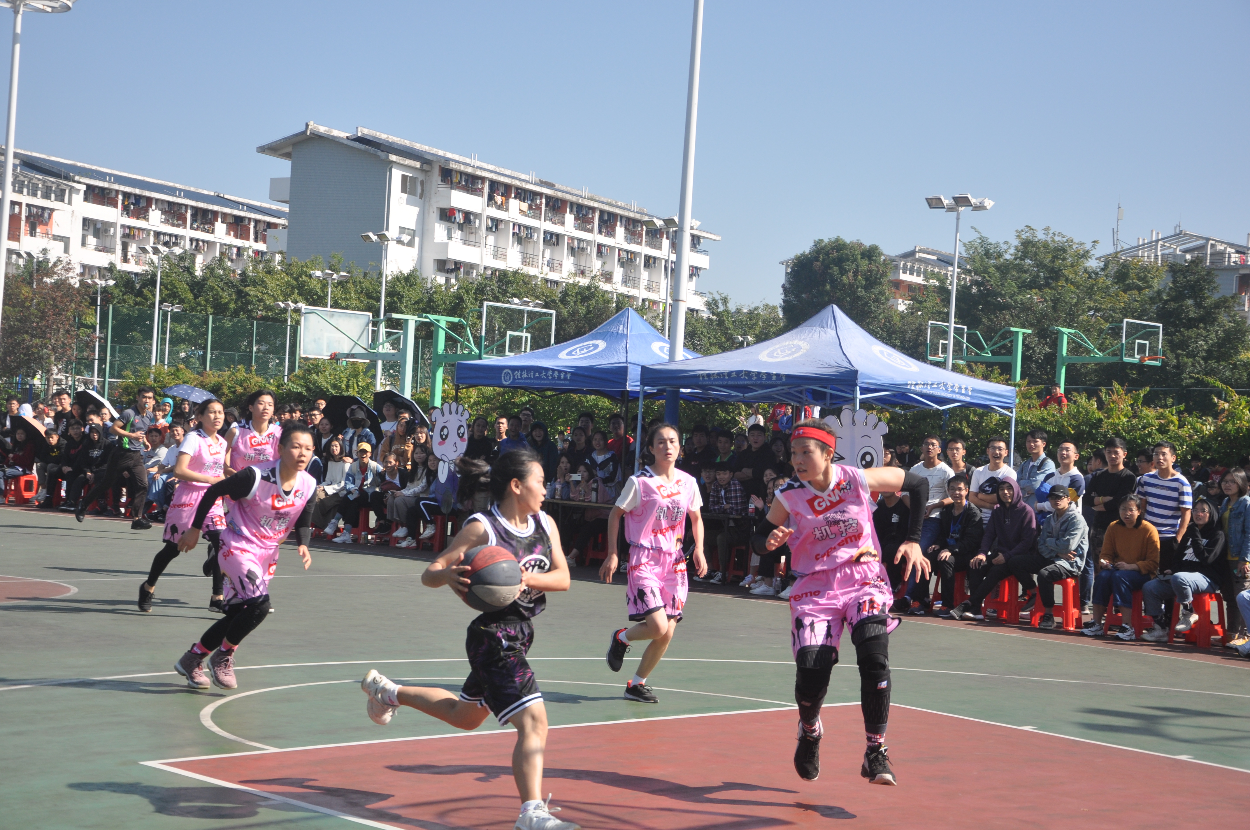 与机控学院“桂工杯”女子组篮球赛冠军的争夺。