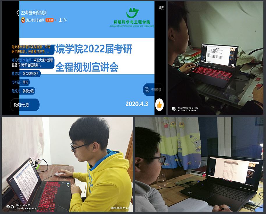 以钉钉直播的形式在线上举办 “2022届考研全程规划”讲座。讲座邀请海天考研院校专业选择规划师汪泽担任主讲人,学院18级有考研意向的同学参加了讲座。