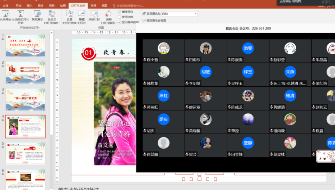 5月9日-5月16日期间组织开展了“致青春,为家国”—争做黄文秀式好青年主题团日活动。为切实开展好本次团日活动,许多团支部采用钉钉线上与QQ群聊的形式开展团日活动,也有部分团支部采取线下开展团日活动的形式,积极学习黄文秀书记相关事迹与精神。