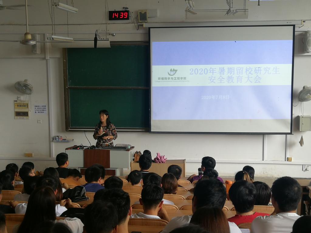 于7月8日下午在07318教室召开了暑期留校研究生安全教育大会。学院党委曾鸿鹄、郝文佳、李艳红、林华、黄亮亮、实验室主任朱宗强老师等参加会议。