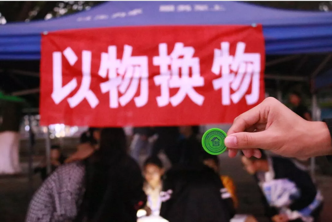 宿舍管理委员会在2020年11月17号下午5:00到8:30,于一号食堂前的广场,开展了“以物换物”的环保宣传活动。