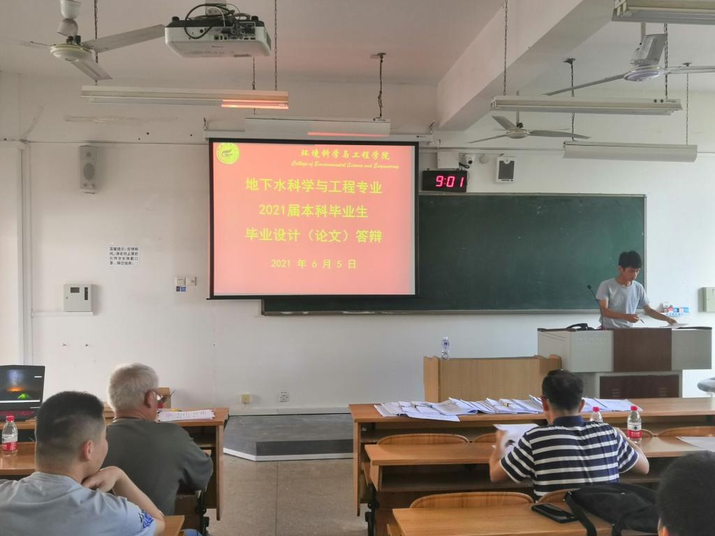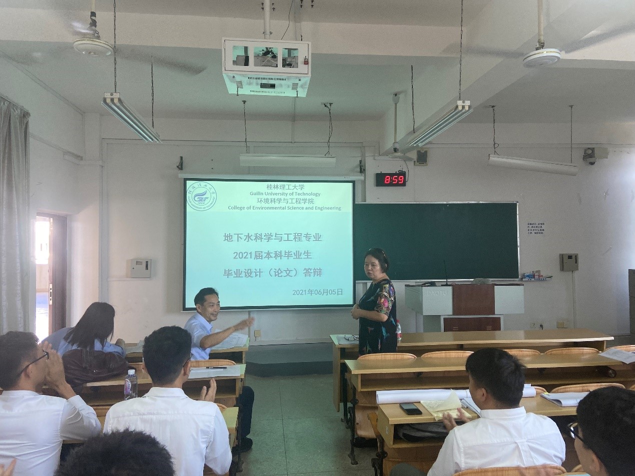 2021届地下水科学与工程专业本科毕业生论文(设计)答辩大会分别在雁山校区06413、06414和06515共3个会场有序进行。本次大会邀请了高级工程师蒋文德、高级工程师白显嵩、高级工程师丁凯共3位校外专家与校内专任教师组成了三个答辩小组,覃志杰、雷钰、宾林强等66名本科生参加了此次答辩。