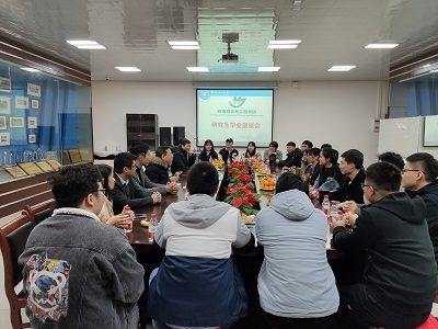 在雁山校区12310会议室召开研究生毕业座谈会,学院全体领导班子、党委委员和12月份毕业的研究生参加了座谈会,会议由学院党委副书记郝文佳主持。