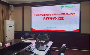 科研和人才优势,加强两家单位在人才培养、技术指导和课题申报方面有更多、更深入的交流合作。郝文佳副书记介绍了目前学院招生就业方面的现状,欢迎桂林市思安江水库管理站来雁山举行现场招聘会。最后,李海翔副院长代表学院与桂林市思安江水库管理站陆佳荣站长签订了校地合作框架协议书。
