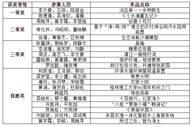 桂林理工大学环保科技创意设计大赛获奖名单