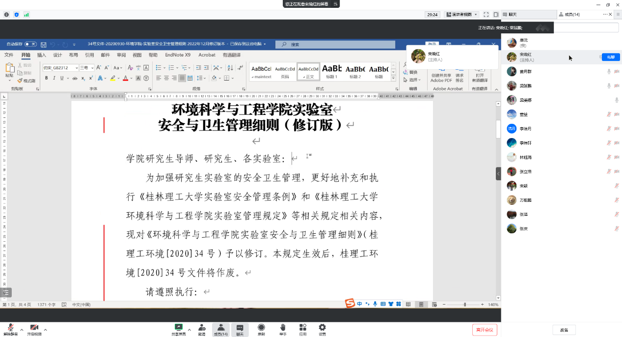2022年12月4日上午,在环境工程中心实验室副主任宋晓红老师的主持下,全体实验教师开展了“实验室安全与管理”线上研讨。