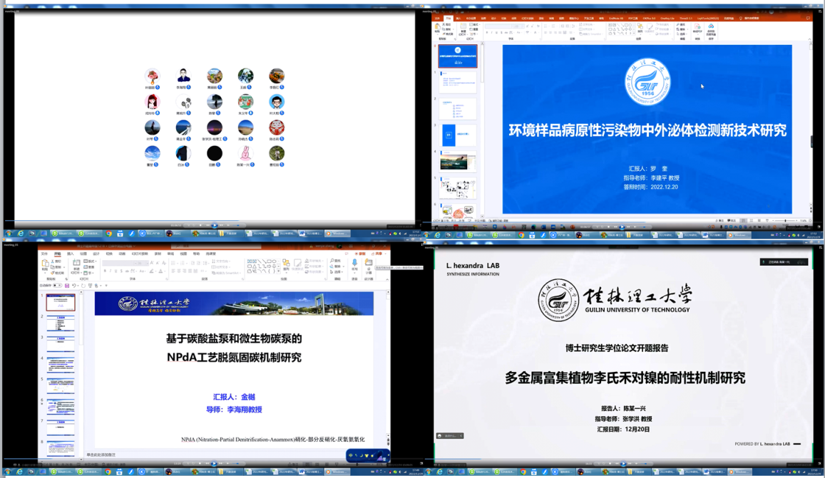 通过线上会议的形式进行了博士研究生开题考核,考核专家组由朱义年教授、张学洪教授、陈志莉教授、孙晓杰教授、李海翔教授、蒋金平研究员组成,2020级2位博士生及2021级15位博士研究生,共17人参加了本次开题考核。同时,研究生院对本次博士生开题进行了督导。