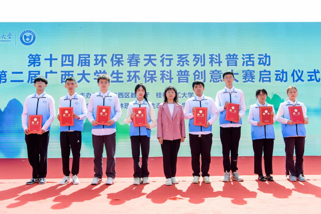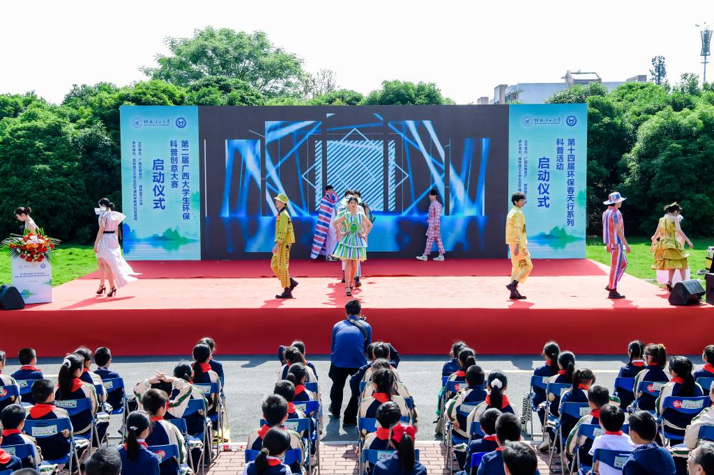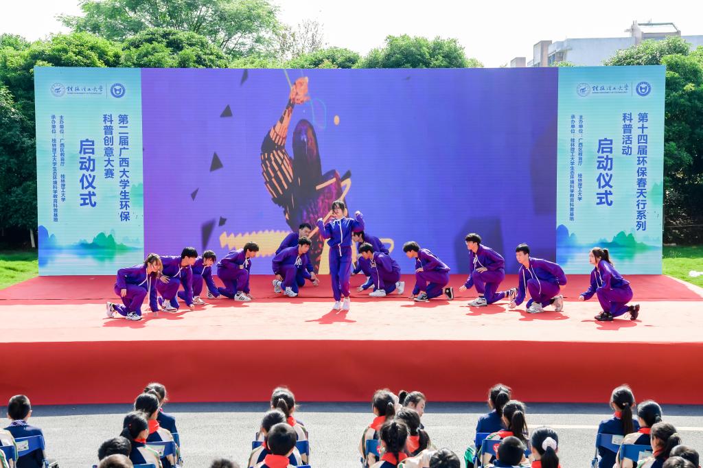 为积极宣传培育生态文明理念,践行习近平生态文明思想、提升大学生和广大市民环保知识素养,繁荣环保科普创作、促进环境科学知识的广泛传播、提升公民环境科学素质水平,4月26日,由广西壮族自治区教育厅和我校共同主办、我校生态环境科学教育科普基地承办的第十四届环保春天行系列科普活动暨第二届广西大学生环保科普创意大赛启动仪式在我校雁山校区15栋教学楼成功举办。学校党委副书记齐俊斌出席活动并在启动仪式上致辞。桂林市团市委学校部部长李楠,桂林市生态环境保护科学研究所所长文善华,桂林市科学技术协会学会部部长秦聪,广西师范大学、桂林电子科技大学、桂林航天工业学院相关代表,学校教务处、团委等部门负责人,100余名环境相关专业本科生代表,80余名小学生代表出席参加本次活动。