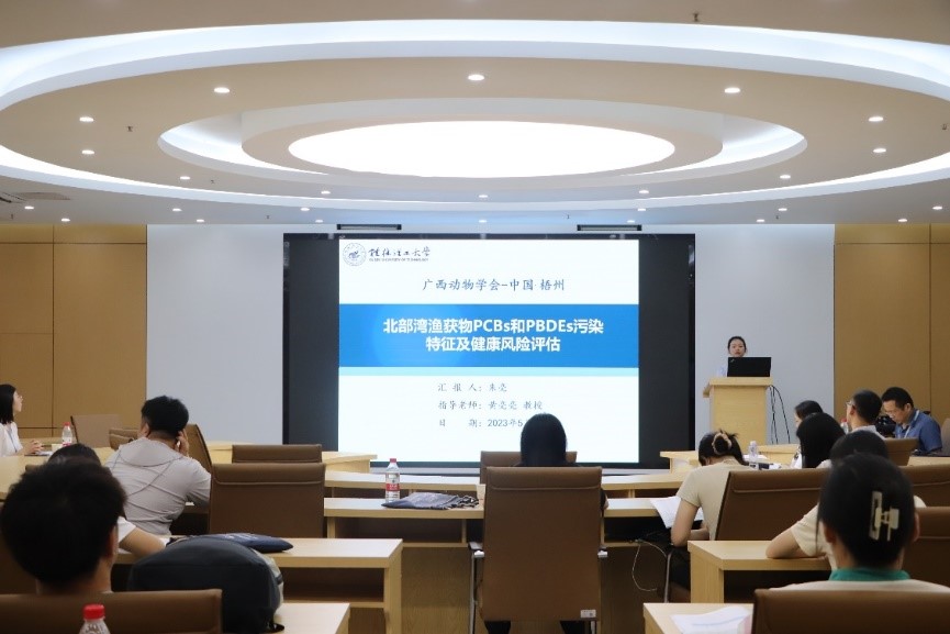 本次大会设置了行为与生态(一、二)、分子与进化、多样性保护共四个分会场,主要围绕动物行为、动物分类与生态、动物基因组与进化、动物多样性、动物生理等专题进行了报告交流。博士研究生何佳洋在“行为与生态”专题汇报了题为“Fish zeta diversity responses to human pressures and cumulative effects across a freshwater basin Feasibility study on fishing ban measures in the Pearl River Basin”的成果,研究结果确定了可能对生物多样性影响最大的人类压力源,为珠江流域乃至其他淡水流域进一步的禁渔政策提供理论依据;硕士研究生王才广在“行为与生态”专题汇报了题为“北部湾渔获物生态化学计量特征研究”的研究成果,为海洋生物地球化学循化及渔业资源的保护和管理提供科学依据;硕士研究生徐浩“分子与进化”专题汇报了题为“The phylogeographical pattern of the Lagocephalus spadiceus (Tetraodontiformes: Tetraodontidae) in the South China Sea”的研究成果,为棕斑兔头鲀的资源保护和育种研究提供了依据;硕士研究生苏琼源、朱亮和承亚男在 “分子与进化”专题分别汇报了题为“北部湾三种优势鱼类重金属污染和碳氮稳定同位素特征研究”、“北部湾渔获物 PCBs 和 PBDEs 污染特征及健康风险评估”和“Occurrence and health risk of legacy and emerging halogenated flame retardants in marine organisms from Beibu Gulf, China”的研究成果,为北部湾海洋环境管理和海产品食用安全提供参考。