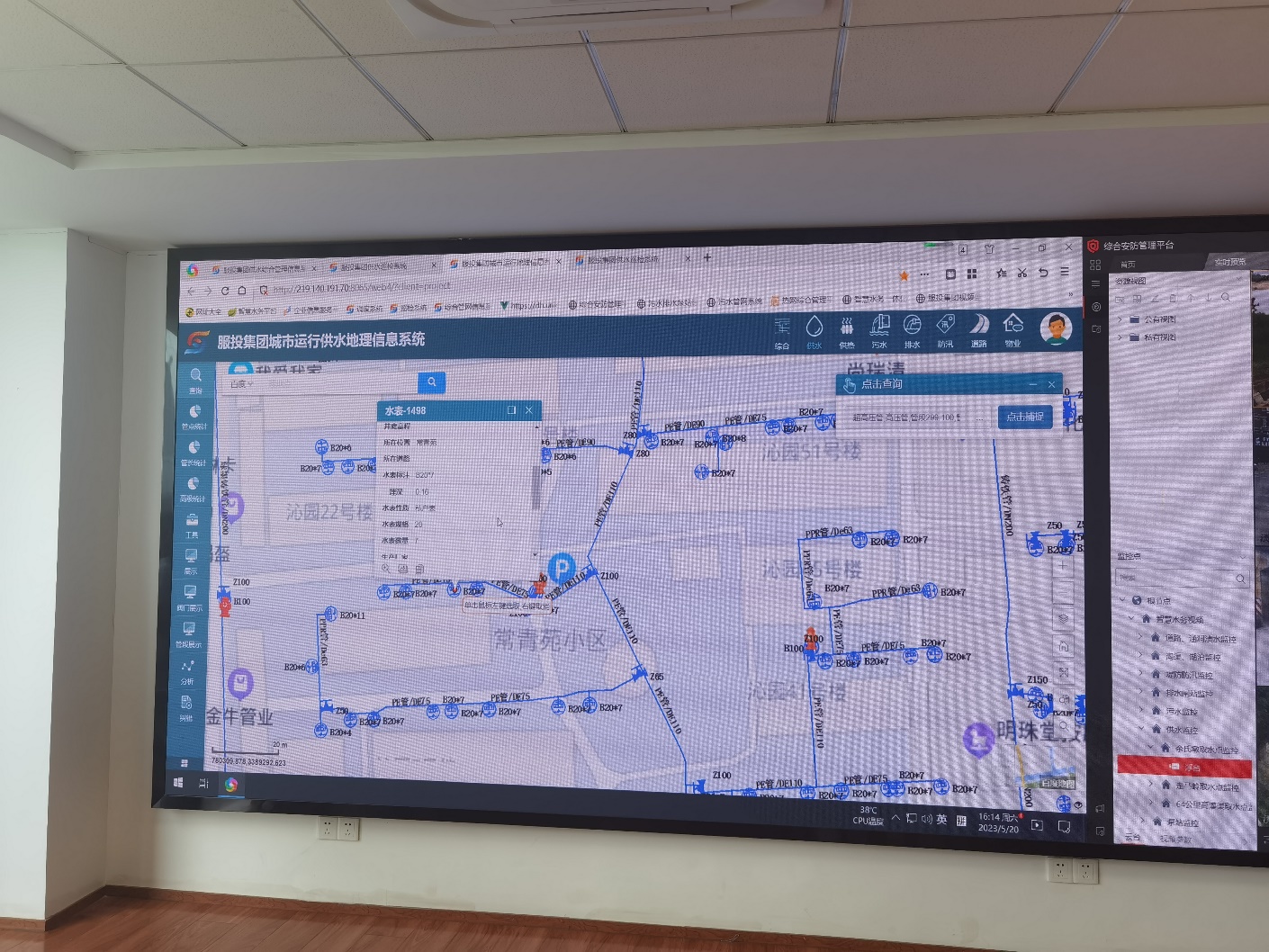 图三 中控智慧控制室管网信息实时监测画面
