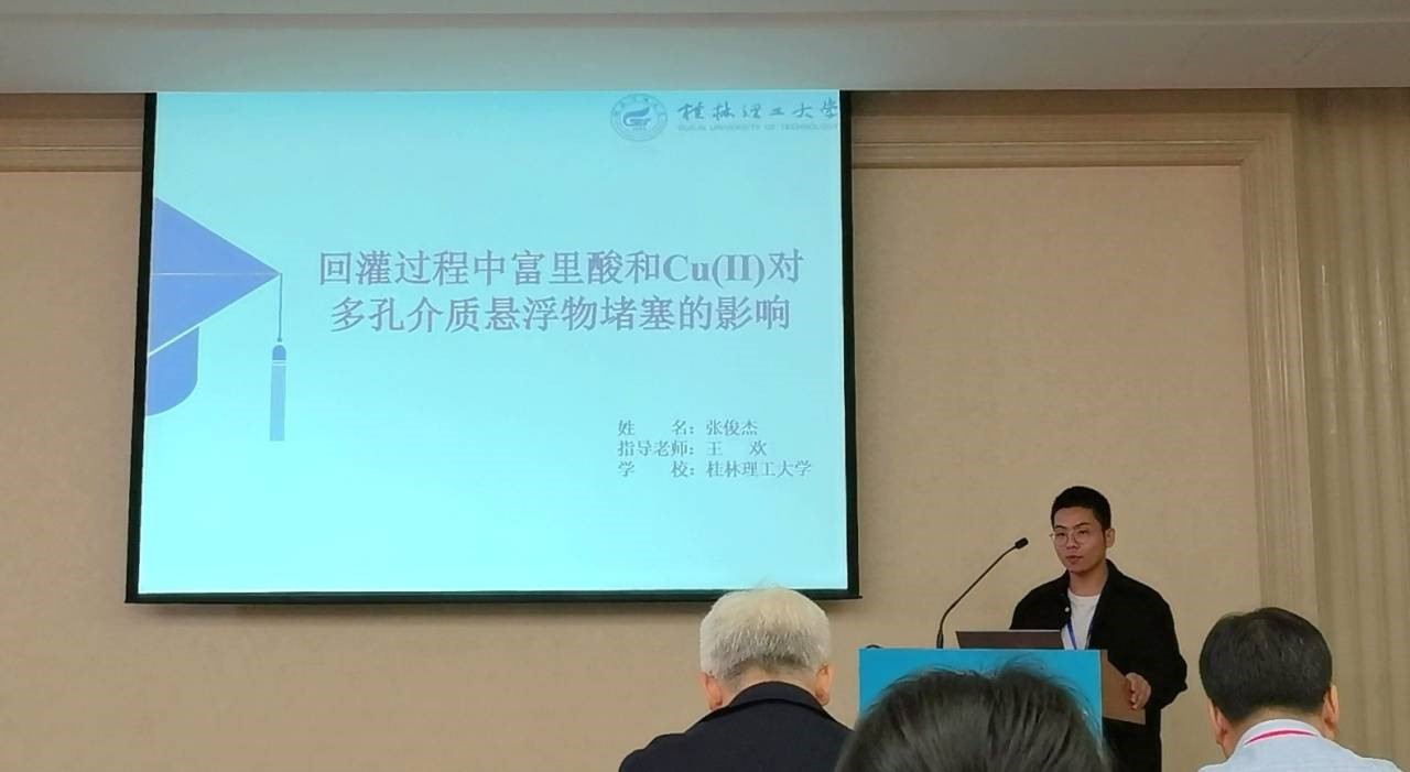 地下水科学与工程专业王欢老师、土木水利(水利)专业硕士研究生张俊杰参加了本次会议。张俊杰在水文地球化学分会场做了"人工回灌条件下富里酸和CU(Ⅱ)对多孔介质悬浮物堵塞的影响"的口头报告。张俊杰同学以人工回灌解决地下水超采问题为背景,报告了回灌水中铜离子和富里酸对含水介质层悬浮物堵塞影响的机理研究,听取了专家的点评与建议。十大赌博网站排行榜