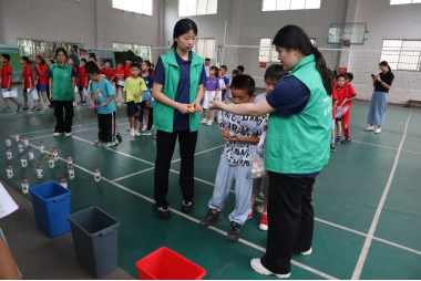 在君武小学体育馆开展了“垃圾分类投一投”、“垃圾分类套一套”和“环保大转盘”等一系列环保科普小游戏。例如,在“垃圾分类投一投”游戏中,小学生们需要将日常生活中常见的纸张、塑料、玻璃、电池等垃圾进行正确的分类,并投入对应的垃圾桶中。这种寓教于乐的方式,不仅加深了小学生对垃圾分类重要性的认识,还鼓励他们在日常生活中主动实践垃圾分类,学以致用,从而促进资源的有效利用和环境保护。